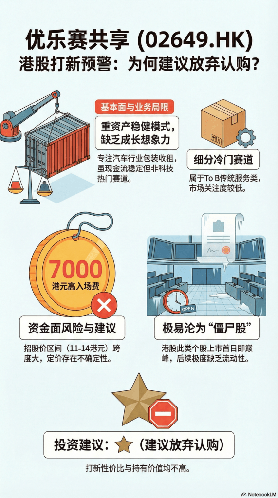 - 投资建议:⭐️ (建议放弃认购)。这类To B传统服务类冷门新股,在港股市场极容易成为上市首日即巅峰、随后长期缺乏流动性的“僵尸股”。打新性价比和持有价值都不高。